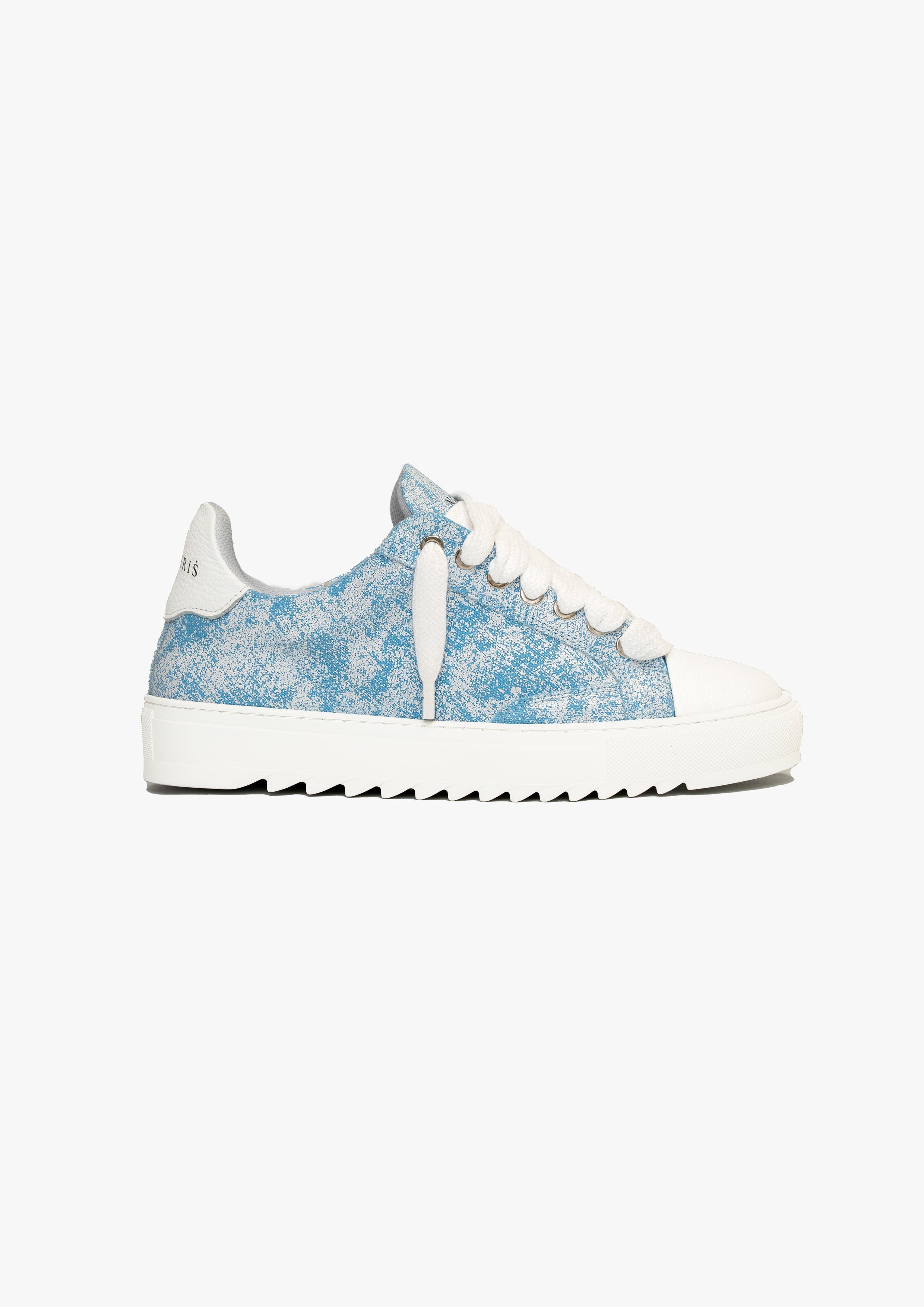 Crafted with meticulous attention to detail, the bespoke hand-dyed canvas upper ensures that each pair is a unique work of art, as no two pairs will bear the same pattern. Complementing this distinctive feature is the signature crisp white pebbled leather toe cap, adding a touch of sophistication to the design. Inside, the trainer boasts a comfortable collar lining that enhances the overall wear experience. The finishing touches include our distinctive Numeriś branding on the heel.